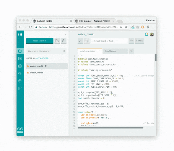 The Arduino sketch is the unit that can include everything you need to bring an idea to life. With the Share feature of the Web Editor you can simply give someone access to your sketches just by sending them a URL, or by embedding the sketch into a webpage or in a Project Hub tutorial.