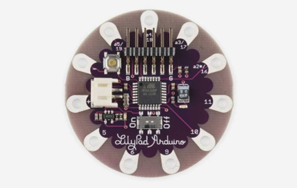 The LilyPad Arduino Simple is designed for e-textiles and wearables projects. It can be sewn to fabric and similarly mounted power supplies, sensors and actuators with conductive thread.