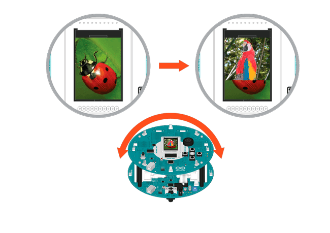 You can make your own gallery/picture show with help of the Robot. Put some pictures in the SD card, start the sketch, and you can see them showing up on the LCD. Use left and right button on the D-pad to go the previous or next image. Press up or down to enter the "tilt navigation" mode.