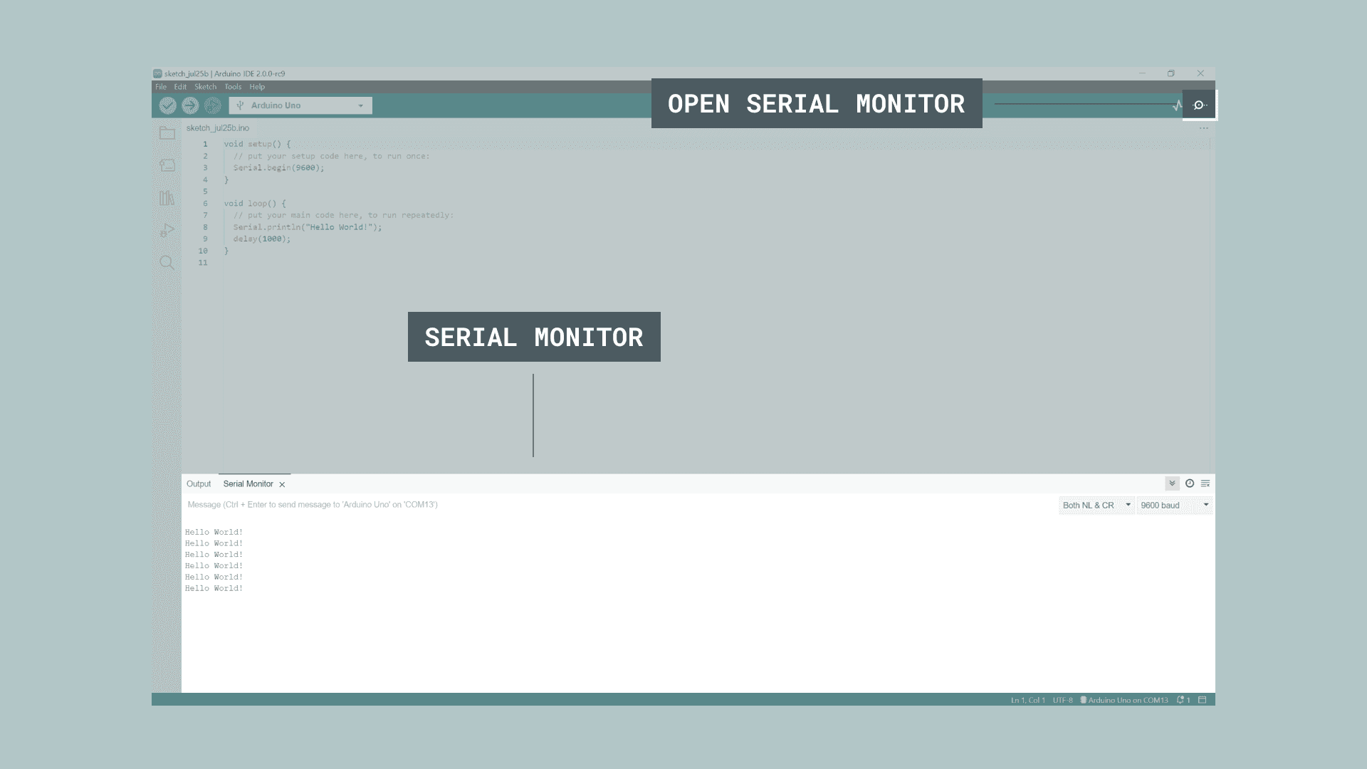 The Serial Monitor is an essential tool when creating projects with Arduino. It can be used as a debugging tool, testing out concepts or to communicate directly with the Arduino board.